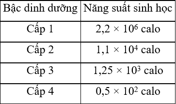 Cho các thông tin ở bảng dưới đây: Hiệu suất sinh thái giữa bậc dinh dưỡng cấp 4 so với