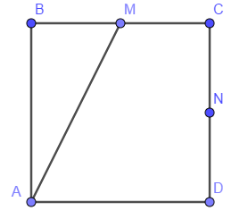 Cho hình vuông \(ABCD\) có độ dài cạnh bằng \(2\). Gọi \(M,N\) lần lượt là trung điểm của