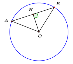 Cho đường tròn \(\left( O \right)\) và một dây \(AB = 6cm,\) khoảng cách từ tâm \(O\) đến dây \(AB\)