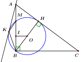 + Xét \(\Delta BOI \sim \Delta BAH \Rightarrow \frac{{BO}}{{BA}} = \frac{{OI}}{{AH}}\)