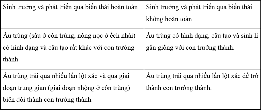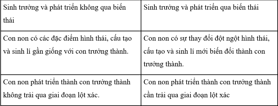 Phân biệt giữa phát triển không qua biến thái và phát triển qua biến thái; giữa phát triển qua