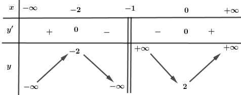 Hàm số \(y = \dfrac{{{x^2} + 2x + 2}}{{x + 1}}\) có giá trị cực đại và giá trị cực tiểu lần lượt là \(a\) và \(b\). Khi đó giá trị biểu thức \(S = b - 2a\) bằng