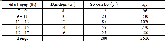 Giá trị đại diện này được tính bằng trung điểm của đoạn (hay nửa khoảng) sản lượng.