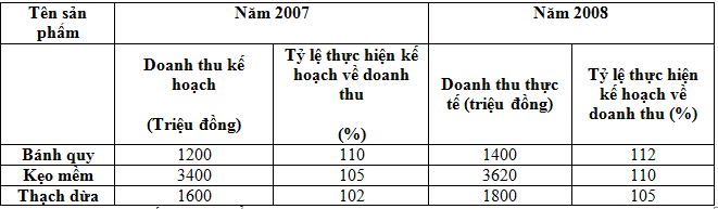 Có tài liệu về doanh thu tiêu thụ sản phẩm của doanh nghiệp bánh kẹo Hải Hà như sau: