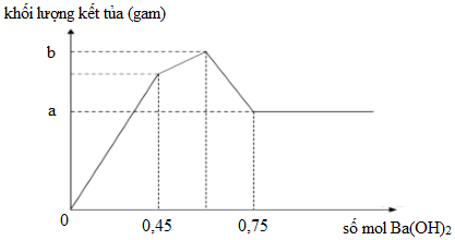 Xét tại hai thời điểm nBa(OH)2 = 0,45 (mol) và nBa(OH)2 = 0,75 (mol).