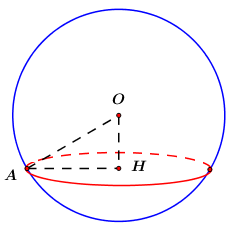 Khi đó, mặt phẳng \(\left( P \right)\) cắt mặt cầu \(\left( S \right)\) theo giao tuyến là đường tròn có bán kính \(r = \sqrt {{R^2} - {d^2}\left( {I;\,\left( P \right)} \right)} .\)