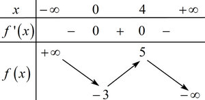 Cho hàm số \(y = f\left( x \right)\) có bảng biến thiên như hình dưới đây. Tìm giá trị lớn nhất của hàm số \(g\left( x \right) = f\left( {4x - {x^2}} \right) + \dfrac{1}{3}{x^3} - 3{x^2} + 8x - \dfrac{5}{3}\) trên đoạn \(\left[ {1;3} \right]\).