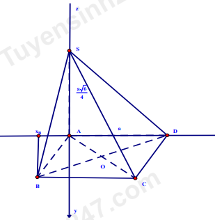 Đặt hệ trục toạ độ và tính khoảng cách giữa hai đường thẳng