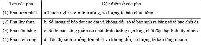Cho các ý sau về quá trình sinh trưởng của quần thể vi sinh vật trong nuôi cấy không liên