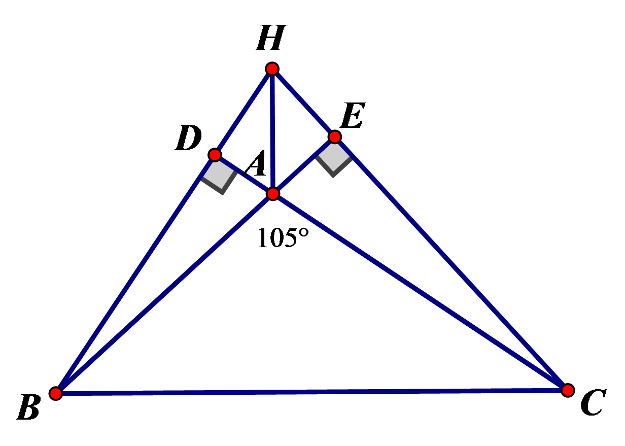 Cho tam giác ABC có góc A bằng 105° và có trực tâm H.