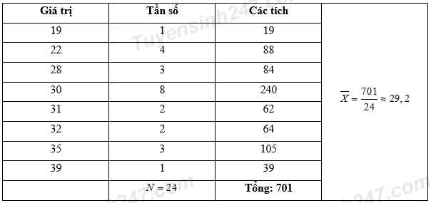 b) Hãy lập bảng tần số và tính trung bình cộng