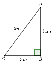 Một người muốn leo lên một mái nhà để sửa mái. Người đó lấy một cái thang, biết cái thang dài \(5m\) và khoảng cách từ chân thang đến nhà là \(3m\). Hỏi khoảng cách từ mặt đất lên mái nhà.