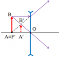 Vật AB có độ cao h được đặt vuông góc với trục chính của một thấu kính phân kì. Điểm A nằm trên trục chính và có vị trí tại tiêu điểm F. Ảnh A’B’ có độ cao là h’ thì
