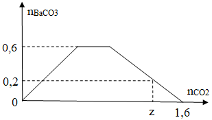 Khi sục từ từ đến dư CO2 vào dung dịch hỗn hợp có chứa 0,1 mol NaOH; x mol KOH và y mol Ba(OH)2,