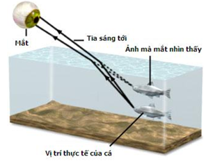 Đặt mắt phía trên một chậu đựng nước quan sát một viên bi ở đáy chậu ta sẽ