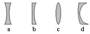 Tiết diện của một số thấu kính phân kì bị cắt theo một mặt phẳng vuông góc với mặt thấu kính được mô tả trong các hình