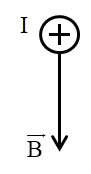 Một đoạn dây dẫn mang dòng điện đặt trong từ trường đều có các đường sức từ thẳng đứng hướng từ trên xuống như hình vẽ. Lực từ tác dụng lên đoạn dây có chiều