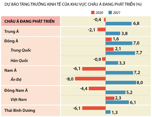 Theo dự đoán năm 2021 Trung Quốc tăng trưởng kinh tế nhanh hơn Việt Nam là bao nhiêu phần trăm?