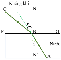 + Khi tia sáng truyền được từ nước sang không khí, góc khúc xạ lớn hơn góc tới.
