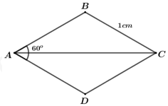 Cho hình thoi \(ABCD\) cạnh bằng \(1cm\) và \(\angle BAD = {60^0}\). Độ dài đường chéo \(AC\) là