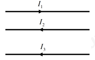 Có 3 dòng điện thẳng song song \({I_1},{I_2}\;\) và \({I_3}\) ở trong cùng một mặt phẳng, cho