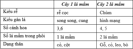 Phân biệt cây thuộc lớp Một lá mầm và cây thuộc lớp Hai lá mầm?
