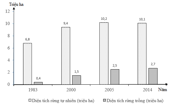 Cho biểu đồ diện tích rừng của nước ta qua một số năm