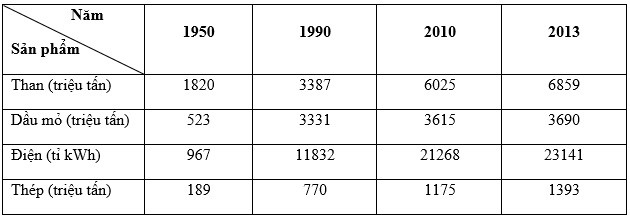 Sản lượng một số sản phẩm công nghiệp trên thế giới giai đoạn 1950 – 2013