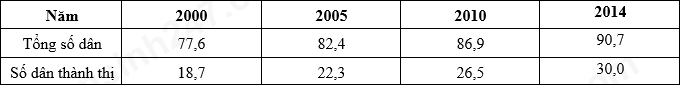 Cho bảng số liệu: DÂN SỐ NƯỚC TA GIAI ĐOẠN 2000 – 2014 (Đơn vị: triệu người) (Nguồn: Niên