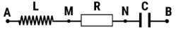 Cho mạch xoay chiều \(AB\) không phân nhánh như hình vẽ. Dùng vôn kế nhiệt đo được điện áp trên đoạn \(AN\) bằng \(150\,\,V\), và trên đoạn \(MN\) bằng \(100\,\,V\). Biết điện áp tức thời trên \(AN\) và trên \(MB\) vuông pha với nhau. Điện áp hiệu dụng trên \(MB\) bằng