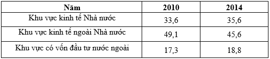 Nhận xét nào sau đây đúng với sự thay đổi cơ cấu tổng sản phẩm trong nước phân theo thành phần kinh tế của nước ta?