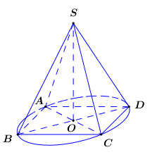 Cho hình nón \(\left( N \right)\) đỉnh \(S\) có bán kính đáy bằng \(a\) và diện tích xung quanh \({S_{xq}} = 2\pi {a^2}\). Tính thể tích \(V\) của khối chóp tứ giác đều \(S.ABCD\) có đáy \(ABCD\) nội tiếp đáy của khối nón \(\left( N \right)\).