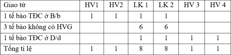 Giảm phân có HVG cho 4 loại giao tử với tỉ lệ 1:1:1:1