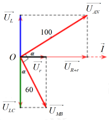 Từ giản đồ vecto tính được \({U_{AB}}\)