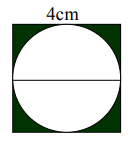 Tính diện tích hình tròn có đường kính 4cm, biết diện tích hình tròn = Bán kính × Bán kính × 3,14