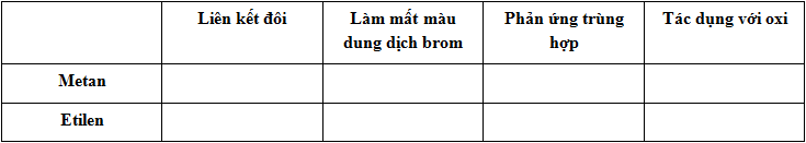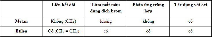 Dựa vào kiến thức tổng hợp về cấu trúc và tính chất hóa học của metan và etilen.