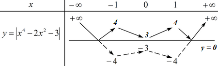 - Lập BBT hàm số \(y = {x^4} - 2{x^2} - 3\), từ đó lập BBT hàm số\(y = {x^4} - 2{x^2} - 3\)\(y = \left| {{x^4} - 2{x^2} - 3} \right|\) và tìm \(m\) thỏa mãn.