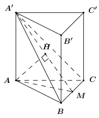 - Tính thể tích \({V_{ABC.A'B'C'}} = A'A.{S_{\Delta ABC}}\).