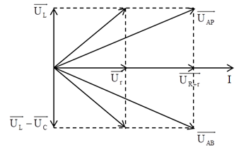 Cho đoạn mạch xoay chiều \(AB\) nối tiếp gồm: \(AM\) chứa biến trở \(R\), đoạn mạch \(MN\) chứa \(r\), đoạn \(NP\) chứa cuộn cảm thuần, đoạn \(PB\) chứa tụ điện có điện dung biến thiên. Ban đầu thay đổi tụ điện sao cho \({U_{AP}}\) không phụ thuộc vào biến trở \(R\). Giữ nguyên giá trị điện dung đó và thay đổi biến trở. Khi \({u_{AP}}\) lệch pha cực đại so với \({u_{AB}}\) thì \({U_{PB}} = {U_1}\). Khi tích \(\left( {{U_{AN}}.{U_{NP}}} \right)\) cực đại thì \({U_{AM}} = {U_2}\). Biết rằng\({U_1} = 2.\left( {\sqrt 6 + \sqrt 3 } \right){U_2}\). Độ lệch pha cực đại giữa \({u_{AP}}\) và \({u_{AB}}\) gần nhất với giá trị nào?