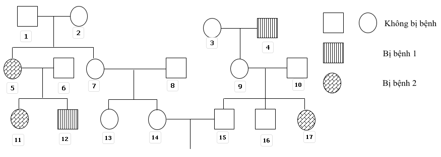 Phả hệ sau đây mô tả sự di truyền của 2 bệnh.