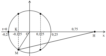 Một vật chuyển động tròn đều xung quanh điểm \(O\) với đường kính \(50\,\,cm\) được gắn một thiết bị thu âm. Hình chiếu của vật này lên trục \(Ox\) đi qua tâm của đường tròn chuyển động với phương trình \(x = Acos\left( {10t + \varphi } \right)\). Một nguồn phát âm đẳng hướng đặt tại điểm \(H\) trên trục \(Ox\) và cách \(O\) một khoảng \(100\,\,cm\). Tại thời điểm \(t = 0\), mức cường độ âm đo được có giá trị nhỏ nhất và bằng \(50\,\,dB\). Tại thời điểm mà hình chiếu của vật đạt tốc độ \(1,25\sqrt 3 \,\,m/s\) lần thứ \(2021\) thì mức cường độ âm đo được có giá trị gần với giá trị nào nhất sau đây?