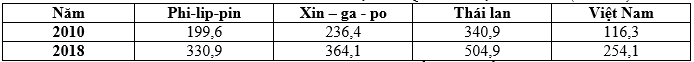 Cho bảng số liệu: TỔNG SẢN PHẨM TRONG NƯỚC CỦA MỘT SỐ QUỐC GIA, NĂM 2018 (Tỉ USD) Căn cứ