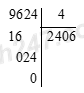 d) Đặt tính chia, thực hiện chia số có 4 chữ số cho số có 1 chữ số. Ta chia lần lượt từ trái qua phải, để tìm thương của phép chia.