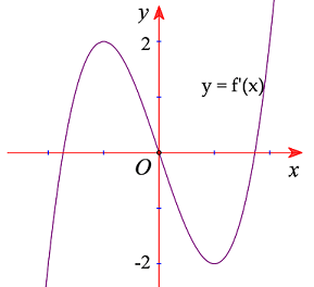 Cho đa thức bậc bốn \(y = f\left( x \right)\) có đồ thị đạo hàm \(y = f'\left( x \right)\) như hình