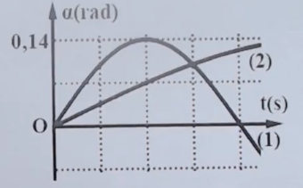 Một sợi dây nhẹ không dãn có chiều dài \(1,5m\) được cắt thành hai con lắc đơn có chiều dài khác nhau. Kích thích cho hai con lắc dao động điều hòa tại nơi có gia tốc trọng trường \(g = 9,8m/{s^2}\). Hình vẽ bên là đồ thị phụ thuộc thời gian của các li độ góc của các con lắc. Tốc độ dao động cực đại của vật nặng con lắc (2) gần giá trị nào nhất sau đây?