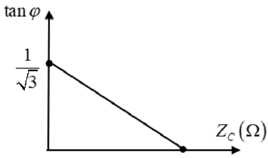 Đặt một điện áp xoay chiều ổn định \(u = U\sqrt 2 co{\rm{s}}\left( {\omega t} \right)V\) vào hai đầu một đoạn mạch ghép nối tiếp gồm điện trở R, một cuộn cảm thuần có độ tự cảm L và một tụ điện có điện dung C thay đổi được. Gọi \(i\) là cường độ dòng điện tức thời qua mạch, \(\varphi \) là độ lệch pha giữa \(u\) và \(i\). Hình vẽ bên là đồ thị biểu diễn sự phụ thuộc của \(\tan \varphi \) theo \({Z_C}\). Thay đổi C để điện áp hai đầu đoạn mạch vuông pha với điện áp hai đầu đoạn mạch RL, giá trị của dung kháng khi đó là