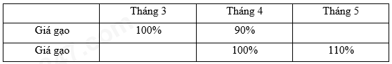 Giá gạo tháng 4 thấp hơn giá gạo tháng 3 là 10%. Giá gạo tháng 5 cao hơn giá gạo tháng 4 là 10%.