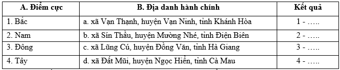 Nối các ý ở cột A với các ý ở cột B để được kết quả đúng (1,0 điểm) Các điểm cực