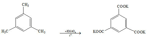 Đốt cháy hoàn toàn hiđrocacbon X rồi cho sản phẩm cháy thu được vào dung dich Ca(OH)2 dư thu được 90 gam kết tủa và nhận thấy khối lượng bình nước vôi tăng 50,4 gam. Tỉ khối hơi của X so với khí hiđro là 60. Cho X tác dụng với dung dịch KMnO4, đun nóng thu được sản phẩm có công thức là C9H3O6K3. Hiđrocacbon X là