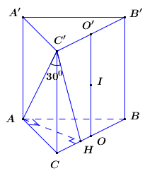 Cho hình lăng trụ đứng ABC.A’B’C’. Đáy là tam giác vuông tại A, có BC = 2AC = 2a. Đường